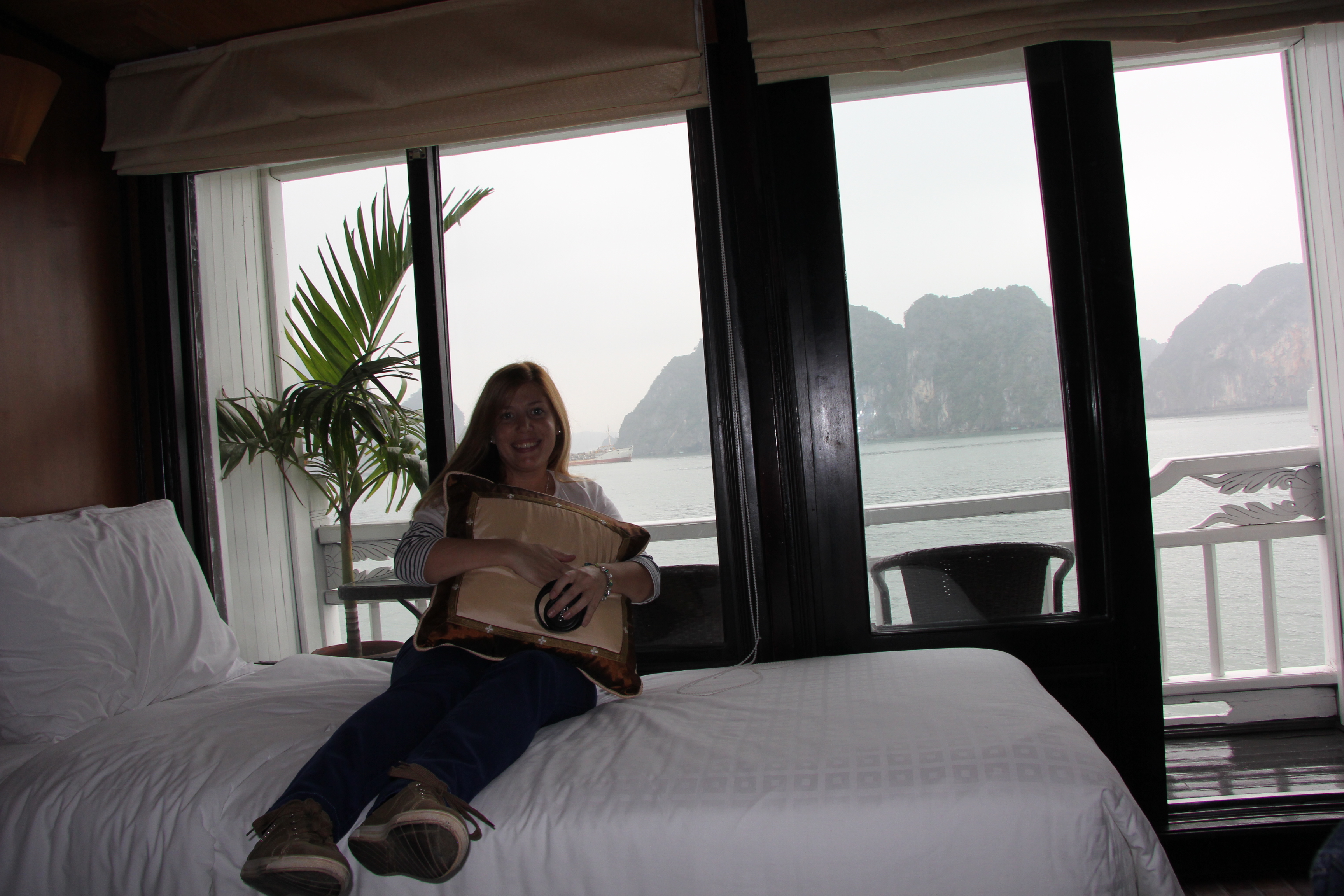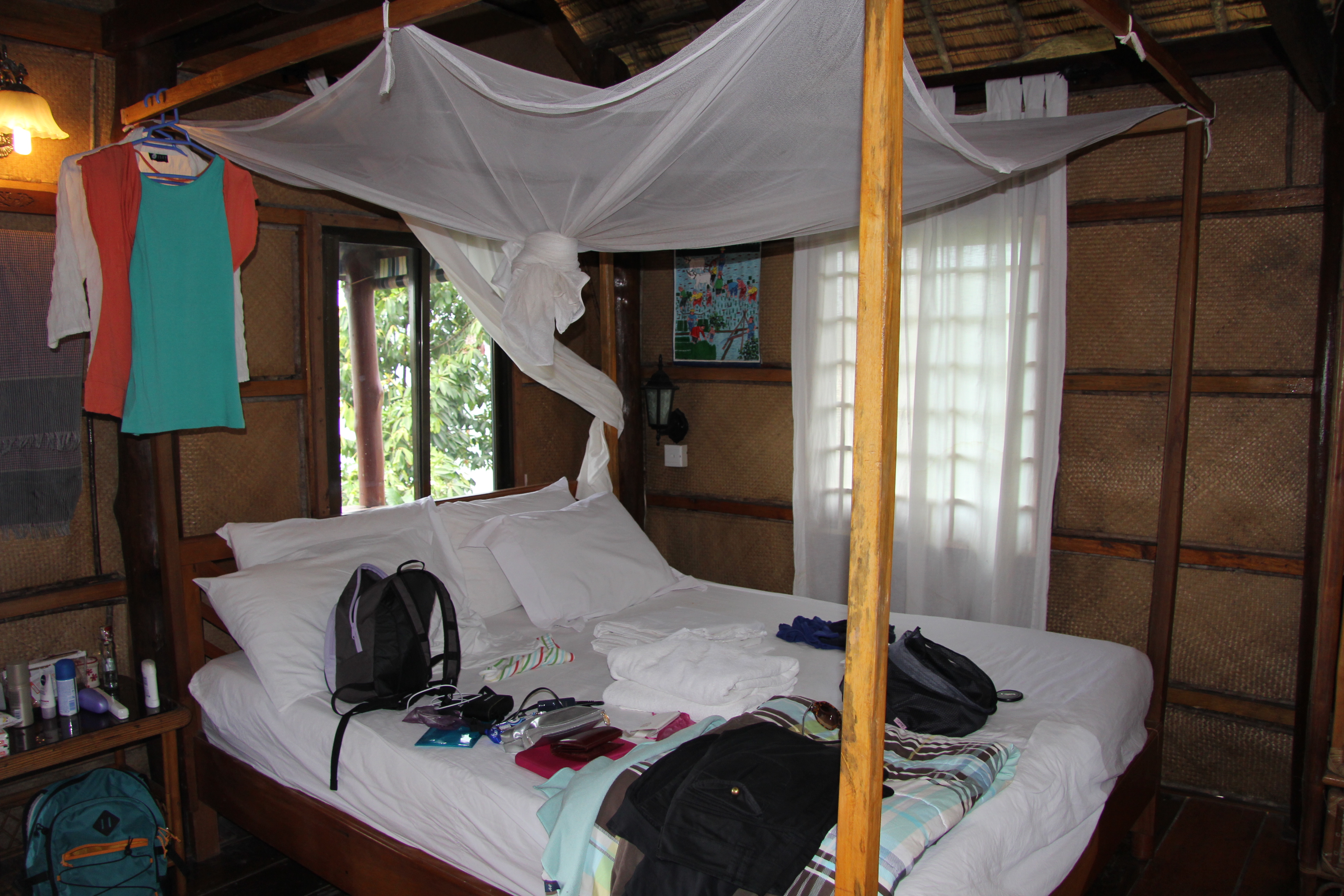 Soon I also was fortunate to meet a pet, as I was going to the restroom. I look up and there it is a giant lizard or gecko, which has red dots and has a head of a dinosaur. This is a moment where a photo of my face would have been really funny. I didn’t expect such an animal in our bathroom. We were just chatting and having cocktails on the terrace and then I go to the bathroom and there it is. (By the way Bacardi Gold 1l is only 9 USD here!!) After the first shock I alerted Melinda, then she brought one of the guys to help us get rid of it. He came with a bamboo stick, we thought he wants to kill it. We cannot let that happen, we are terrified, but the thing can’t die. Of course he never intended to kill it, Buddhists don’t really do thatJ. After hitting 2-3 on the wall, it quietly moved away. Hurray, we are saved!:) Not for long though, as an hour later, I noticed the horrifying look on Melinda’s face, as she stands up and slowly moves away. She tells me to save myself as well. It has crawled out, but not alone, accompanied by her mother it seems. OMG!! Thankfully we have a mosquito net above our bed, which can be tucked in neatly, so no one can bother us during our sleep. I think it took me 2 minutes to google what this animal is. I found out that it’s a tokkeh gecko and probably it won’t kill us. Although I learnt that if it bites, it won’t let go, you have to put it under water or hot air (hairdryer). We were so scared of them, but they are harmless, they just follow the light and eat insects (which is quiet handy for us). After a day we knew the strategy, we switch on the light on the terrace, they move out, we go under the mosquito netJ. We also had a frog and who knows what else. I am actually relieved that we haven’t met huge spiders, scorpions or snakes. The gecko was so beautiful, with the red and blue dots. We are getting better with this, as I remember back in the Peruvian jungle we didn’t dare to sleep, even under the mosquito net. Now it felt so safe. This is a good training for us for Lao, where we plan to do the Gibbon Experience (google it, it’s on Youtube as well). You sleep on a tree in the jungle in a house that is open air and zip line among the trees. I really hope we won’t be scared to do it:).