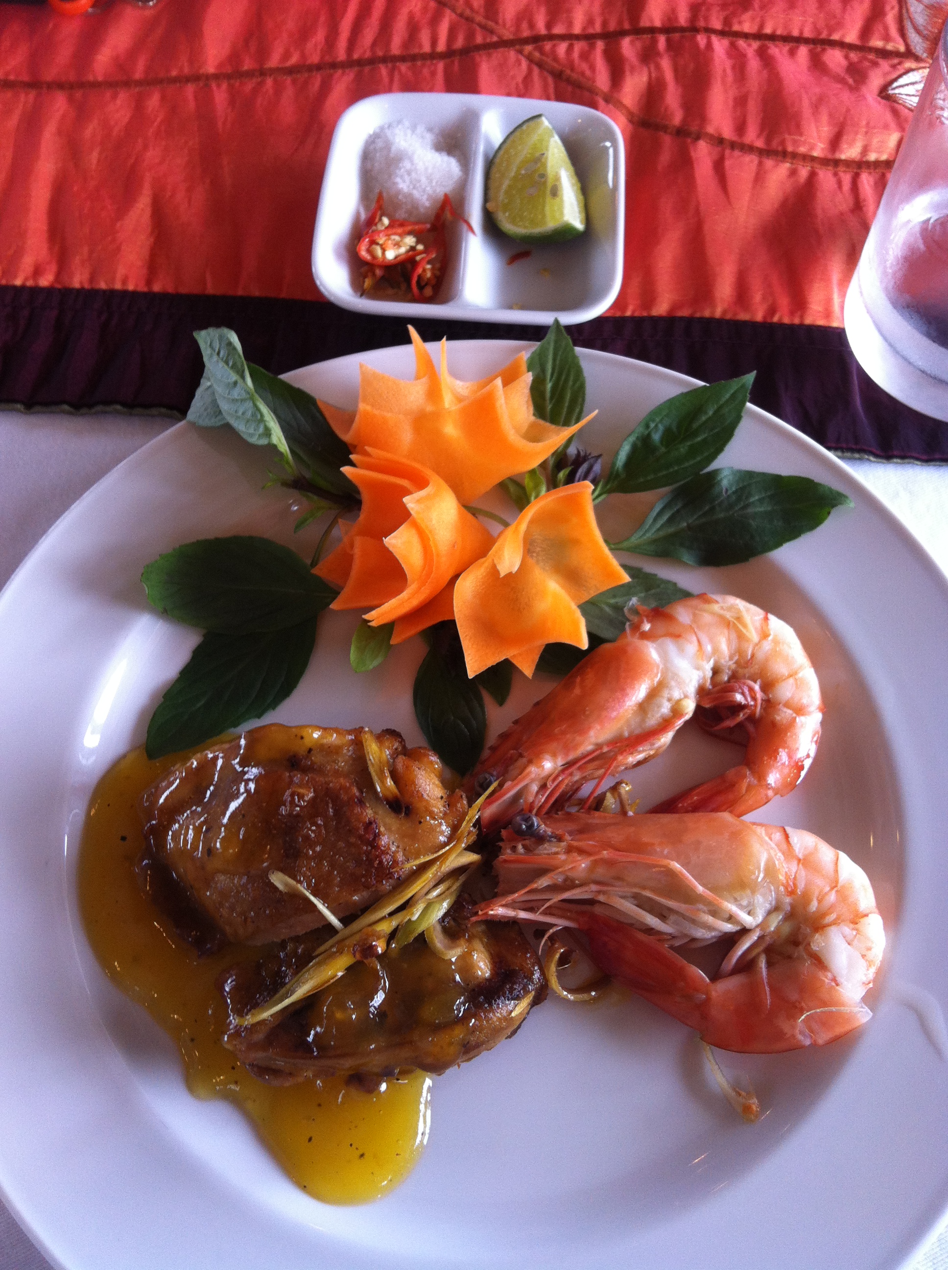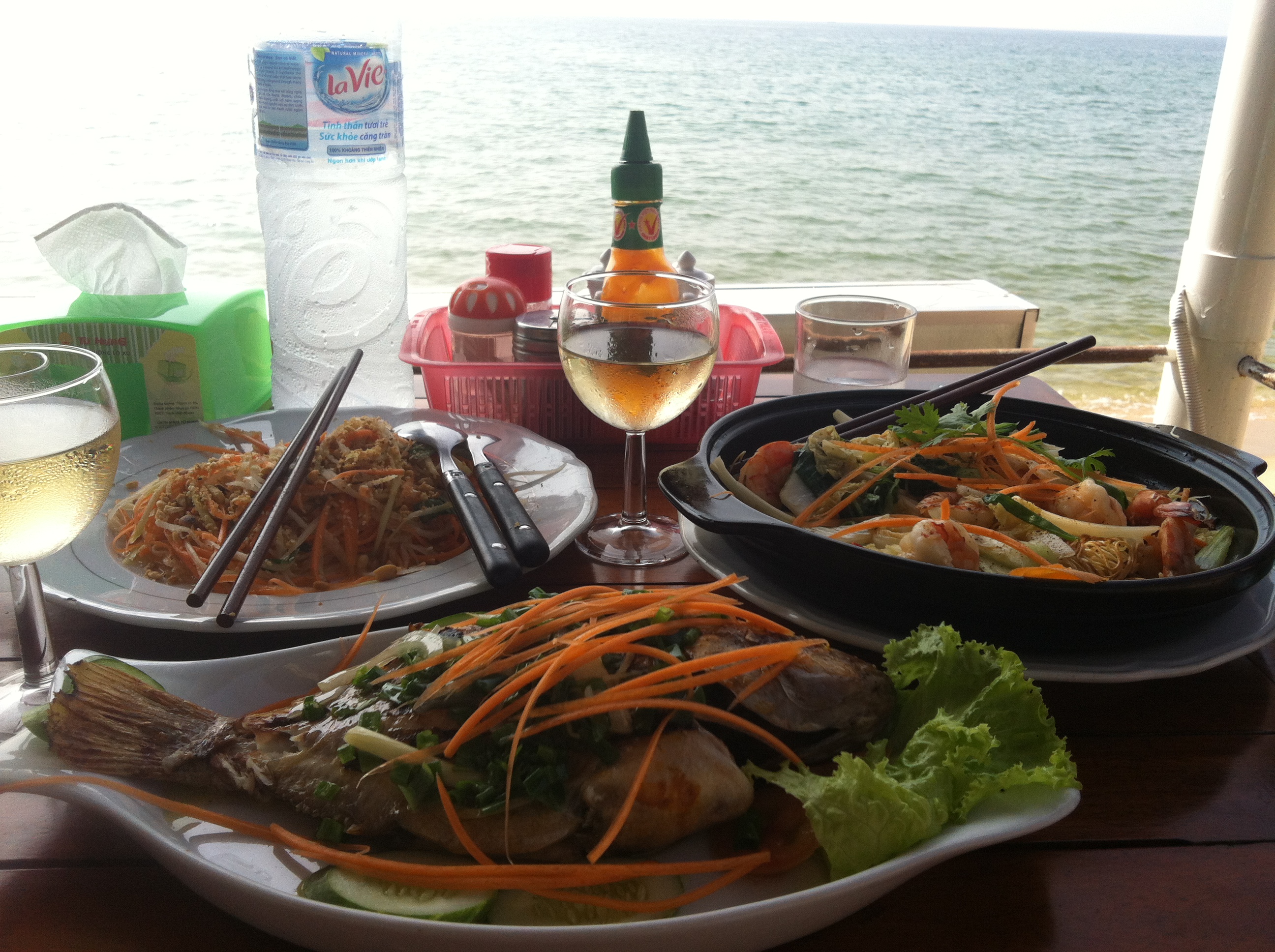 Sometimes we eat dinner here, but also go in town with a tuk tuk or go to another restaurant on the hill. Lonely Planet was admiring this French restaurant, where we had Korean BBQ:) and a seafood plate. You BBQ the prawns, squids and beef yourself, it’s really cool. I once had it in London before.