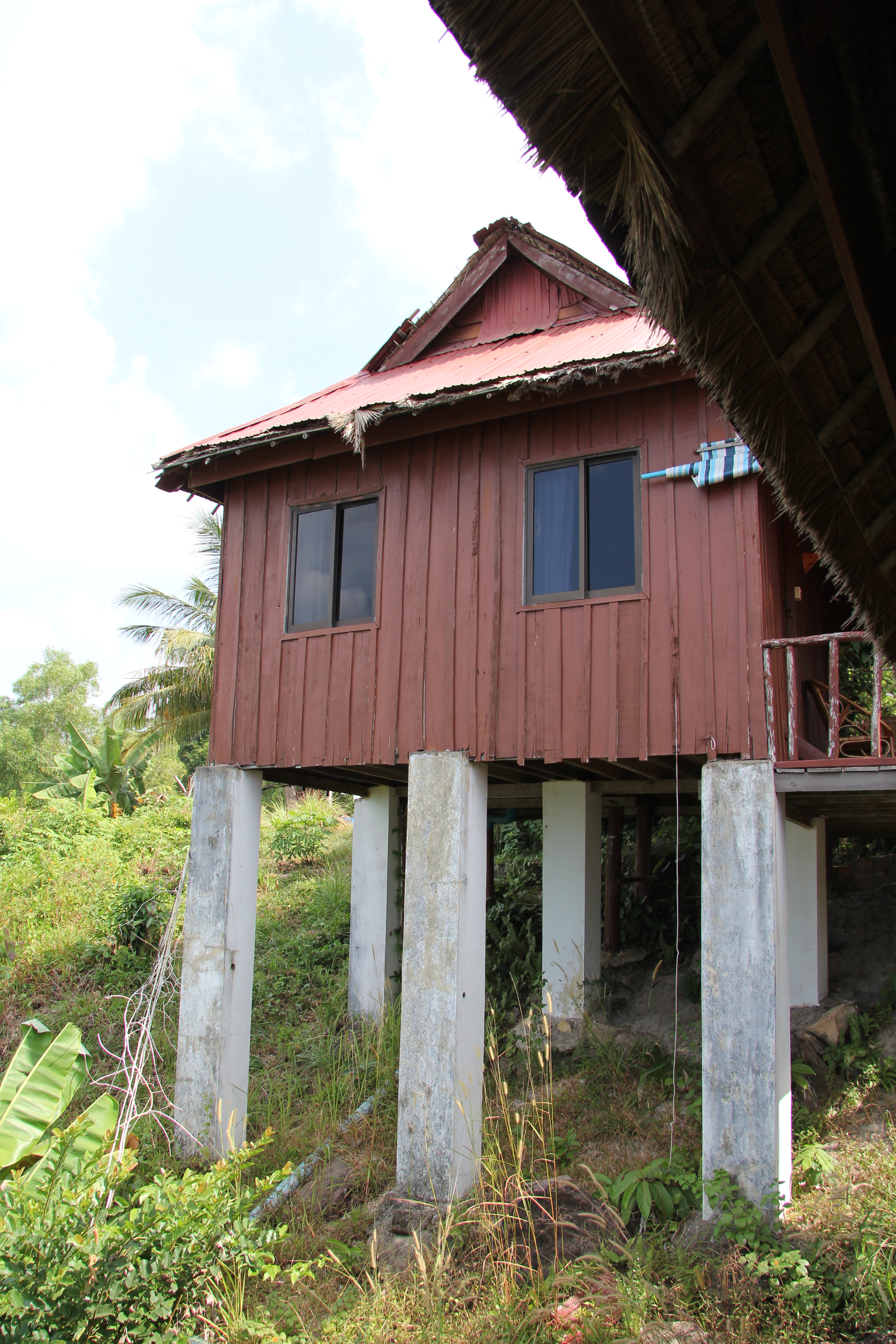Itt ülök a fa bungalónk erkélyén, a laptoppal az ölemben, hallgatom a tenger hullámzását és a gekkók énekét. Nagyon ügyesek vagyunk, mert szuper helyre foglaltunk szállást a Booking-on. Messze van a város dübörgő zajától, csend van, nyugalom és paradicsomi szépség. Egy hegyoldalon vannak a bungalók, fákkal, sűrű növényzettel és sziklákkal övezve. Sihanoukville a legnagyobb tengerparti üdülőhely Kambodzsában, de a neve hangzása alapján lehetne akár Kanadában is. Az elején nem sikerült megjegyezni a város nevét, nem tudom miért tűnt olyan nehéznek, SiskaMiskának becéztük el. Egy hetet töltünk itt, az elején még azt gondoltuk, hogy majd elmegyünk egy hajó túrára, vagy szigetről szigetre ugrálunk, bejárjuk a szomszédos nemzeti parkot, de végül nem így lett, hét csodálatosan csendes napot töltöttünk itt. Első három éjszaka a hegytetőn aludtunk kőházikóban, az erkélyről a tenger pici részét lehetett csak látni, majd leköltöztünk a hegyoldali fa bungalóba, ami a legszebb kilátással rendelkező szerintem, az erkélye párhuzamos a tengerrel és amikor reggel felkeltem, csak fel kellett emelnem a fejem, hogy kinézzek az ágy végében lévő ablakon. Utolsó éjszakára leköltöztünk a közvetlen tengerparti bungalóba, ami óriási, a tető fából és pálmalevelekből készült, mint a hegyié, viszont itt már kő padló és óriási tér fogadott minket. A bungalókhoz tartozik egy étterem és a legtündéribb személyzet, egy mindenes lány (manager, szakács, pincér, recepciós), egy szakács néni, egy tuk tuk sofőr /takarító és egy-két lusta fiú:). A reggelinél lévő apró fiú mindig elmondja nekünk, hogy mennyire fáradt, miután arrébb pakol 1 db bögrét és lesöpör egy asztalt. A többi fiút pedig rendszeresen lent látjuk a parton szunyókálni. Csak a csaj pörög szerintünk, neki csillagos ötös jár. Állandóan csinál valamit, vagy rohan, de soha sem ideges, olyan nyugodt és mosolygós.
