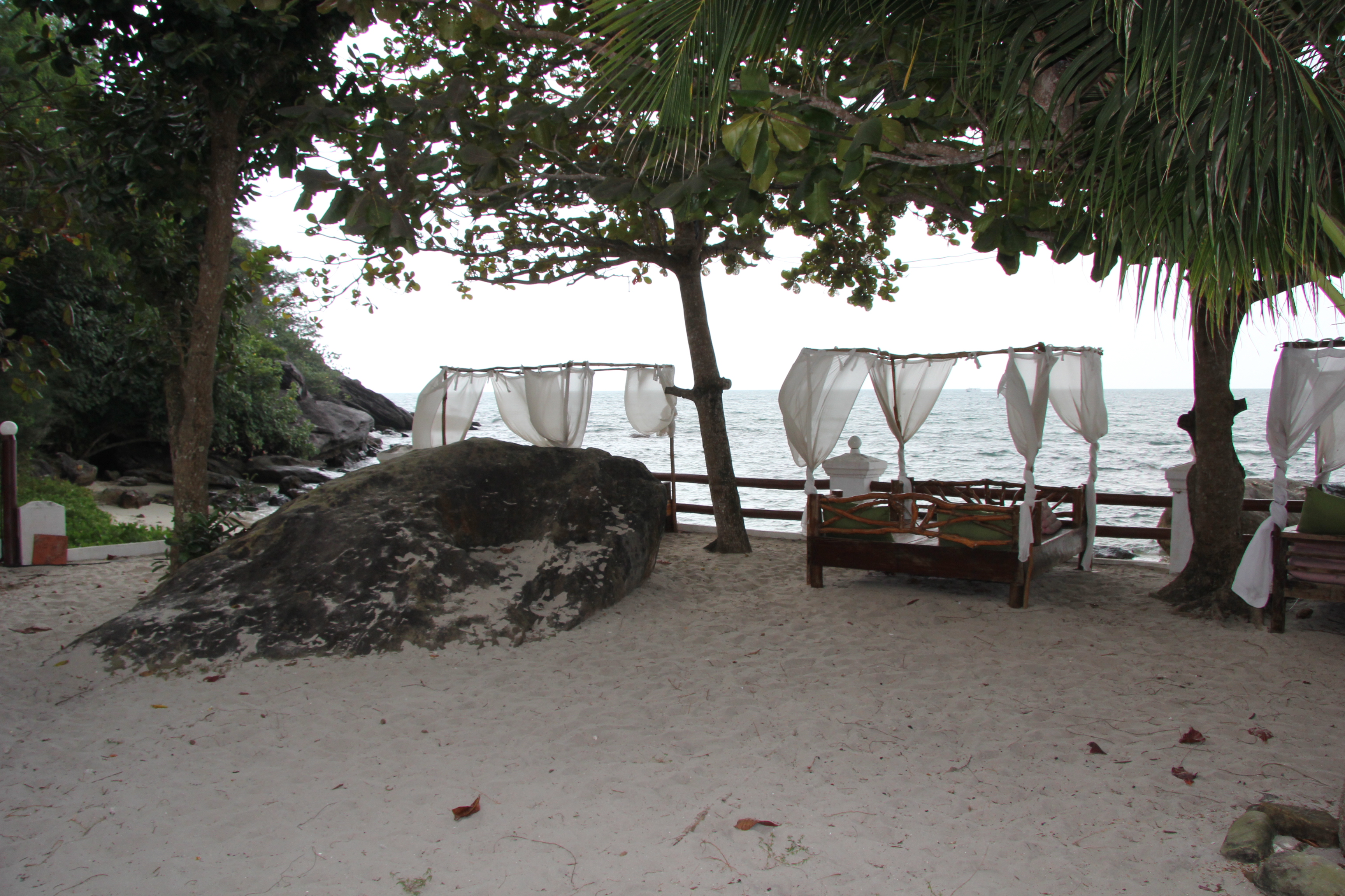 I am sitting on the terrace of our bungalow, overlooking the water, writing on my laptop, listening to the roaring of the ocean. We did an excellent job, booking this bungalow on Booking.com. It’s quiet a distance from the buzz of the city, it’s peaceful. The bungalows are located on the hillside, surrounded by rocks and a lush garden. Sihanoukville is the major seaside resort in Cambodia. Doesn’t it sound like a city in Canada? We are spending a week here. In the beginning we thought we will do boat tours, maybe island hopping or visit the national park close by, but we didn’t go anywhere. We spent 7 amazing days here. The first three nights we slept on the top of the hill in a stone bungalow, then moved down to our amazing sea view wooden bungalow and then to the seaside one. The wooden bungalow was the best, with a terrace facing the ocean and I just had to lift my head from the bed to see the water through the window. There is a nice restaurant here where we eat our Cambodian Curry. Everyday. It’s with shrimps, potatoes, carrots, egg plant, coconut milk and spices. I just can’t get bored of it. The girl who is the manager / waiter / receptionist here, brings it to us in 10 minutes, with the chillies on the side. She does everything here and she is always running, but always has a calm smile on her face. The rest of the staff is an old lady, a cook and many lazy boys. We always laugh at one of the guys here, who is with us at breakfast and always complains about how tired he is after moving one mug and cleaning one tableJ. He is really sweet though. He can say Köszönöm (Thank you in Hungarian). We see many of the other guys sleeping by the sea in the afternoon.