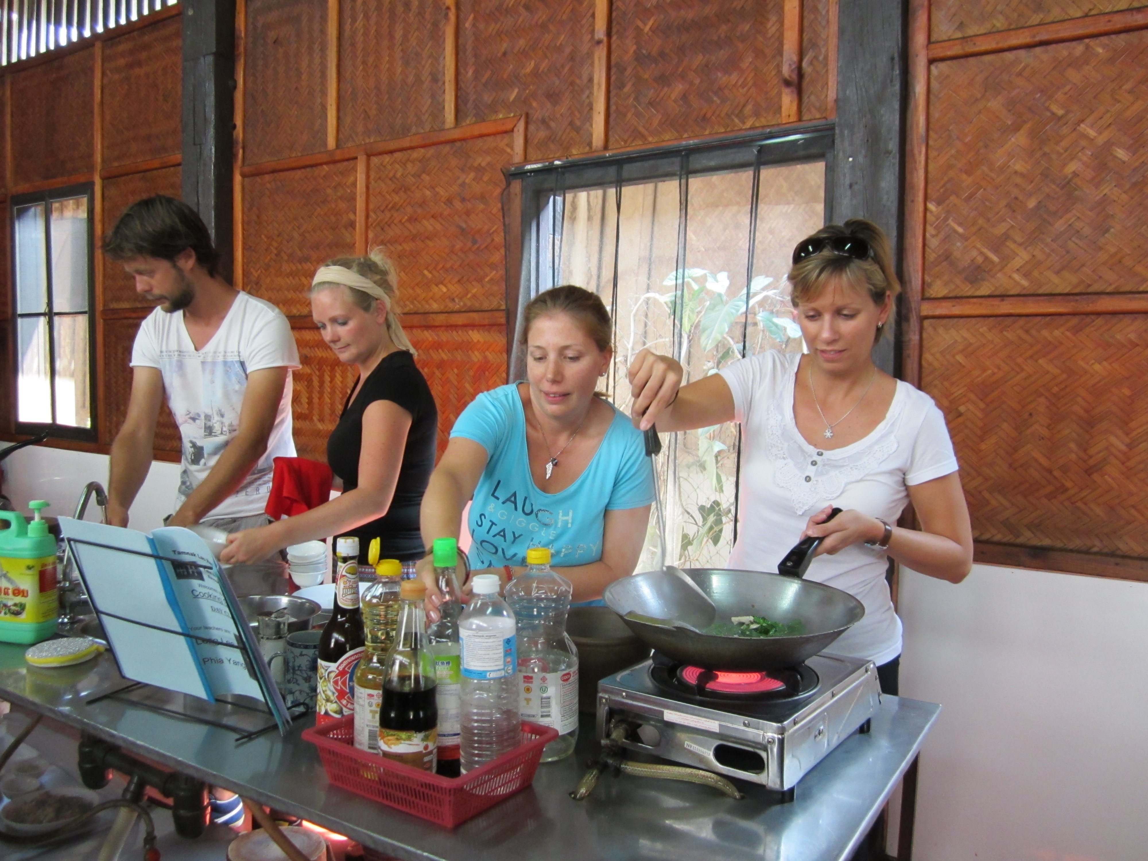 They wake up at 4 in the morning, pray and chant together, meditate. Then they go for the alms collection (major „tourist attraction” of the town). Around six in the morning hundreds of monks line up and locals fill their bags with food, mainly sticky rice. It is a good deed to give food for monks and they are highly respected. The monks prepare breakfast from the food they get and put aside some for lunch. After noon they are not allowed to eat more, only drink. I heard some of them keep snacks if they get very hungry:). Then they go to state school, then to monk school. In the afternoon there is some time to rest and also it’s the time to clean the temple. At half past five it’s chanting and praying time with meditation again. Foreigners can also join in. Which I truly hope to do tomorrow, finally. As in the last week I was sick of food 2 times. I am happy to loose some weight, but maybe it’s not a very healthy way:). I would rather skip it in the future.